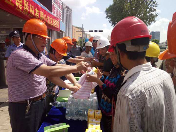 在慰問活動中,劉厚純書記每到一處都向堅守崗位的一線員工表示親切慰問,與項目經理進行交談,詳細了解項目施工情況和工人的生活情況。他要求各項目部要切實關心一線作業(yè)人員的安全和健康,采取有效措施,合理調整工作時間,確保將防暑降溫工作落到實處,確保員工身體健康,確保生產安全。