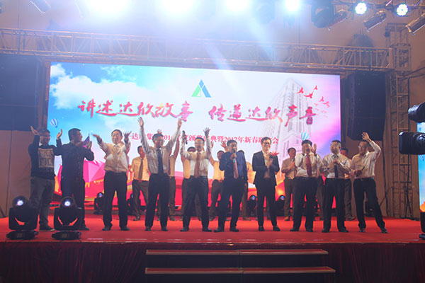 集團高管們在澎湃的“達欣之歌”聲中激情登場,公司董事長馬和軍進行了致辭答謝。他回顧了公司 一年來所取得的輝煌成績,感謝社會各界及公司全體同志們的努力,并對公司的未來發(fā)展之路描繪了藍圖;接著,縣委書記陸衛(wèi)東發(fā)表重要講話, 他指出,建筑業(yè)是我縣的傳統(tǒng)產(chǎn)業(yè),也是一個富民強勢產(chǎn)業(yè),還是我縣財政收入的重要來源之一,作為縣內(nèi)的骨干企業(yè),達欣公司步入了公司歷史以來發(fā)展最快、榮譽最高、分配最多、貢獻最大的時期,他希望公司要加快發(fā)展,高起點定位,突出重點,好中求快,實現(xiàn)達欣新飛躍。