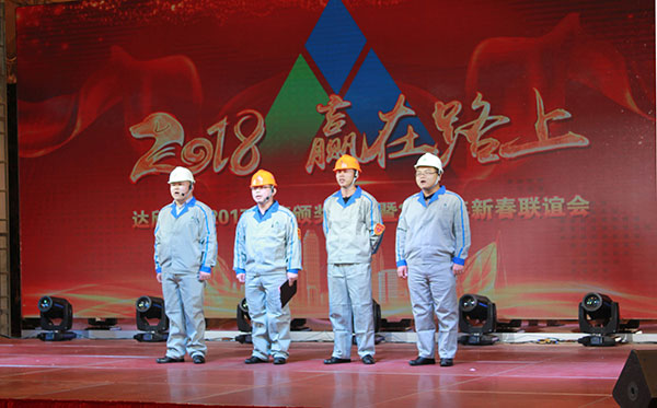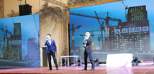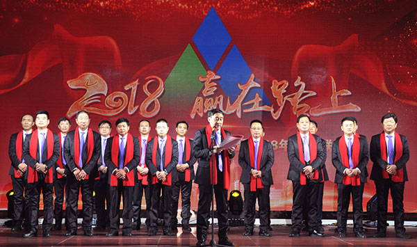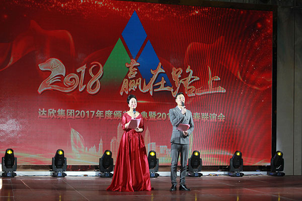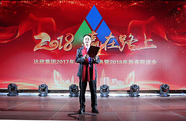 集團(tuán)高管們在澎湃的“我們走在大路上”聲中激情登場,公司董事長馬和軍進(jìn)行了致辭答謝。他回顧了集團(tuán)一年來所取得的輝煌成績,感謝社會各界及全體達(dá)欣人的努力,并對公司的未來之路描繪了新的發(fā)展藍(lán)圖;接著,縣委書記顧國標(biāo)發(fā)表講話, 他指出,作為全縣經(jīng)濟社會發(fā)展的重要板塊,我縣建筑業(yè)總體發(fā)展態(tài)勢良好,總量和質(zhì)量穩(wěn)步提升。作為“海安建筑鐵軍”中的一支老牌“勁旅”,達(dá)欣集團(tuán)的市場競爭力和品牌影響力不斷提升,他對公司2018年工作提出了新的希望,寄語未來集團(tuán)要進(jìn)一步深化企業(yè)體制機制創(chuàng)新,全面加快產(chǎn)業(yè)升級步伐,全面實施“科技強企”戰(zhàn)略,搶抓機遇,精準(zhǔn)定位,打造達(dá)欣更加輝煌的未來!