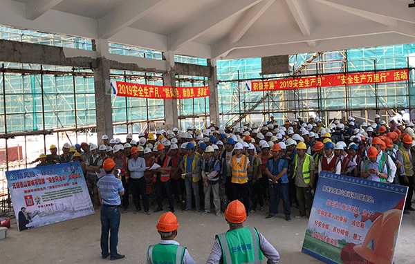 項目部認真組織精心策劃,項目負責人馬寧偉從“強力推動、精心組織、狠抓落實、確保安全”四個方面進行動員,項目部將集中開展“防風險、除隱患、遏事故”主題宣講、安全宣傳咨詢、事故警示教育、應急救援演練等系列活動。同時舉行了項目全體施工人員安全月簽名活動,并現(xiàn)場宣布“安全生產(chǎn)月”活動啟動。會上要求,項目始終貫徹執(zhí)行集團“安全高效鑄精品 環(huán)保誠信創(chuàng)輝煌”的安全管理方針,把項目安全生產(chǎn)擺到更加突出、更加重要的位置,動員全體員工以“安全生產(chǎn)月”活動為契機,以活動促工作,以活動促安全,把全體員工的安全意識提升到一個新高度,把無錫惠山新城項目的安全工作推向一個新臺階。