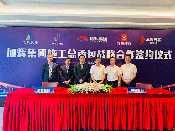 在旭輝集團執(zhí)行總裁陳東彪先生與達欣集團董事長馬和軍先生的共同見證下,旭輝集團運營中心總經(jīng)理劉峰與達欣集團黨委書記劉厚純代表雙方簽約施工總承包戰(zhàn)略合作協(xié)議。
