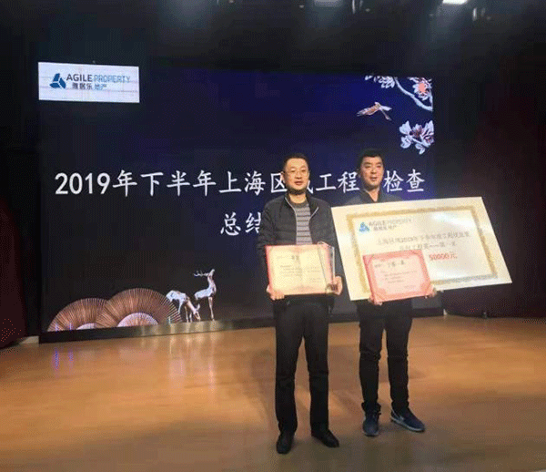 雅居樂地產(chǎn)集團(tuán)為保證工程質(zhì)量,激勵區(qū)域內(nèi)各承建公司樹立優(yōu)秀總包單位標(biāo)桿,實施全年上、下半年度區(qū)域內(nèi)檢查評比,第一工程公司承接的中央府項目在雅居樂地產(chǎn)集團(tuán)上海區(qū)域上半年檢查評比中獲得了“雅居樂上海區(qū)域總承包工程第一名”的殊榮。集團(tuán)公司董事、第一工程公司經(jīng)理杭小建受邀在雅居樂地產(chǎn)集團(tuán)上海區(qū)域上半年度總結(jié)大會上領(lǐng)獎并作經(jīng)驗交流。