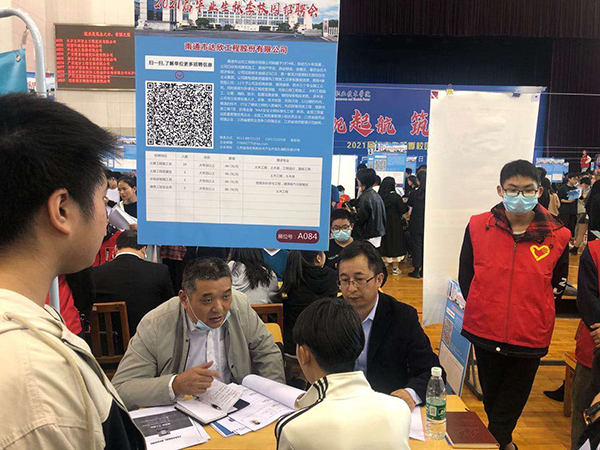 近日,第八工程公司組織參加了湖南省水利水電職業(yè)技術(shù)學(xué)院2021屆畢業(yè)生秋季大型校園招聘會。會上,通過積極推薦及宣傳,有許多優(yōu)秀畢業(yè)生對我司頗感興趣,紛紛表示有意向來公司就職,有些學(xué)生甚至得到老師的推薦專程來我司展位臺應(yīng)聘。我們將積極而為,通過此次招聘雙向選擇,為企業(yè)選用優(yōu)秀的畢業(yè)生,助力企業(yè)高質(zhì)量發(fā)展提供人才保障。