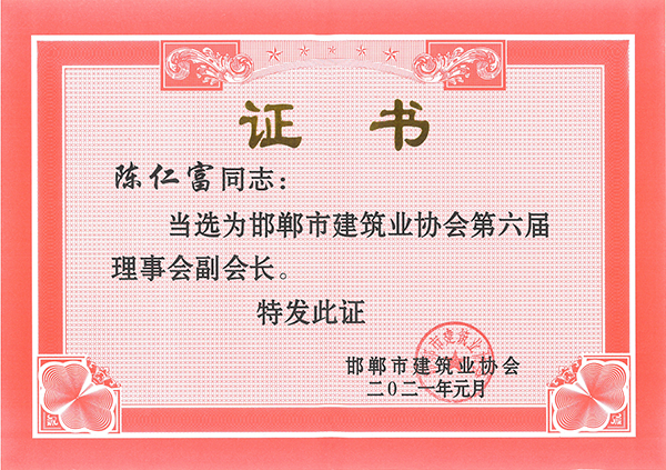 2021年1月8日,邯鄲市建筑業(yè)協(xié)會第六屆會員大會第二次會議在邯鄲市舉行。會上,第三工程公司總經(jīng)理陳仁富當選為邯鄲市建筑業(yè)協(xié)會第六屆理事會副會長。