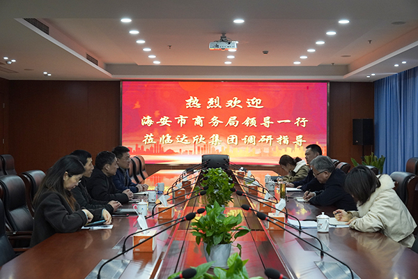 3月3日上午,海安市商務(wù)局黨組書記、局長馮永進(jìn),副局長史霞兵一行蒞臨集團(tuán)開展工作調(diào)研。董事長馬和軍、常務(wù)副總經(jīng)理王邦國等陪同。