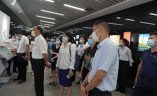 領(lǐng)導(dǎo)們一行來到企業(yè)展示中心,觀看了集團(tuán)黨建專題片---紅旗鐵軍,詳細(xì)聆聽了集團(tuán)黨委開展的四項(xiàng)融合、四微黨建、三項(xiàng)目標(biāo)的“四四三”黨建工作法等內(nèi)容,了解了具有達(dá)欣特色的“工地黨旗美如畫”黨建工作新舉措、新理念。隨后,領(lǐng)導(dǎo)們還參觀了馬和軍勞模創(chuàng)新工作室黨支部,聽取了集團(tuán)建筑工地上流動黨員立足本職崗位,發(fā)揮帶頭模范作用,提升項(xiàng)目質(zhì)量,助推集團(tuán)高質(zhì)量發(fā)展的情況介紹。