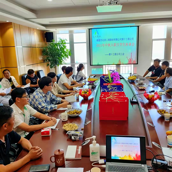 為進(jìn)一步了解、關(guān)愛大學(xué)生思想動態(tài)和需求,9月8日,第十工程公司舉行“迎中秋,大學(xué)生座談會”。公司副總經(jīng)理陳廣興、工會主席曹伍群、技術(shù)總工李鐵橋等領(lǐng)導(dǎo)及18名大學(xué)生參加了座談會,會議由工會主席曹伍群主持。