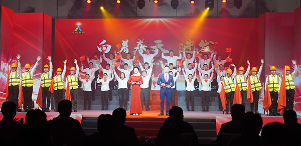 年會上,由工程公司自編自演的歌舞、情景詩朗誦、相聲等節(jié)目,深刻演繹出達欣人不畏困難、勇往直前的良好精神面貌。