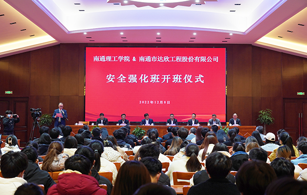 12月8日下午,南通理工學院-達欣集團校企合作“安全強化班”開班儀式,在南通理工學院海安校區(qū)舉行。南通理工學院董事長陳明宇,黨委副書記、海安校區(qū)黨工委書記、管委會副主任周宗泉,校長助理、海安校區(qū)管委會副主任謝衛(wèi)軍等校領(lǐng)導;達欣集團董事長馬和軍,黨委書記劉厚純,常務(wù)副總經(jīng)理王邦國,副總經(jīng)理、安全總監(jiān)、工會主席溫鶴華等出席活動。南通理工學院建筑工程學院院長、黨總支書記劉榮桂主持會議。
