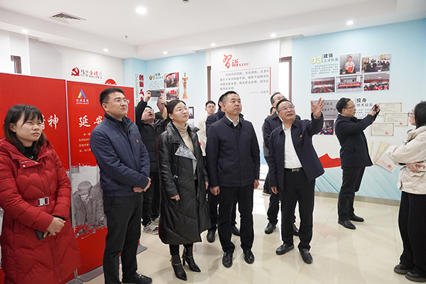 調(diào)研組一行參觀了集團(tuán)展示中心和馬和軍勞模創(chuàng)新工作室黨支部,觀看了企業(yè)黨建宣傳片,了解了集團(tuán)四十多年的發(fā)展歷程,以及集團(tuán)黨委通過(guò)實(shí)施“四四三”黨建工作法實(shí)現(xiàn)企業(yè)黨建“量化、細(xì)化、標(biāo)準(zhǔn)化”,多措并舉將流動(dòng)黨員牢牢凝聚在黨旗下的生動(dòng)案例。何長(zhǎng)表示,達(dá)欣黨委針對(duì)建筑行業(yè)黨員流動(dòng)性強(qiáng)的特點(diǎn)精準(zhǔn)施策,銳意創(chuàng)新,借助企業(yè)“微黨建”使達(dá)欣流動(dòng)黨員紅旗鐵軍隊(duì)伍在企業(yè)攻堅(jiān)克難、科技創(chuàng)新、轉(zhuǎn)型升級(jí)等方面發(fā)揮了巨大作用,將企業(yè)黨建工作的“痛點(diǎn)”、“難點(diǎn)”轉(zhuǎn)化為成果總結(jié)的“拐點(diǎn)”、“亮點(diǎn)”,形成了頗具借鑒推廣意義的創(chuàng)新工作模式。