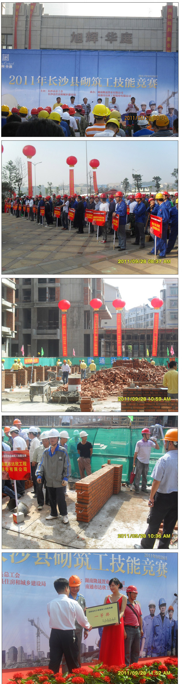9月28日上午,秋高氣爽、丹桂飄香,由長沙縣總工會、長沙縣住房和城鄉(xiāng)建設(shè)局主辦,湖南隆晟置業(yè)有限公司和我公司承辦的 2011年長沙縣砌筑工技能競賽活動圓滿落幕。第一工程公司長沙旭輝?華庭項(xiàng)目部選手方子星一舉奪冠,榮獲參賽單位集體一等獎(jiǎng)。