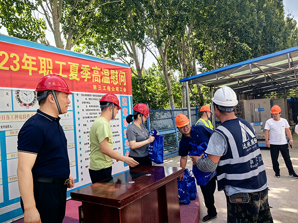 一線送清涼,關愛暖人心。職工們都紛紛表示:感謝工會對我們的關懷,我們將以實際行動在高溫下做好防護,立足崗位,做好本職工作,為項目生產的順利進行而努力。