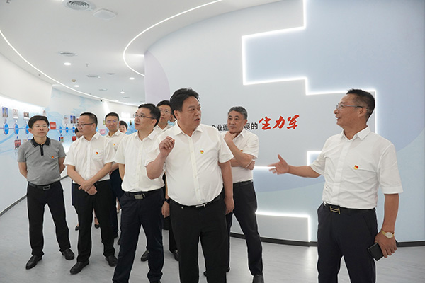 于立忠一行參觀了“征途如虹”企業(yè)印記,“初心如炬”黨建云庫,“教誨如風(fēng)”達(dá)欣講堂,“使命如山”先鋒服務(wù)站,“追夢如潮”職工書屋,“群團(tuán)如影”風(fēng)采展示等七個(gè)版塊和書記工作室。于立忠指出,達(dá)欣黨建主題館,全方位展現(xiàn)了企業(yè)黨建成果和發(fā)展成就,形式生動(dòng),內(nèi)涵豐富、詳實(shí)。于立忠強(qiáng)調(diào),抓好非公企業(yè)黨建始終是促進(jìn)非公經(jīng)濟(jì)發(fā)展健康發(fā)展的核心舉措,“高質(zhì)量黨建引領(lǐng)企業(yè)高質(zhì)量發(fā)展”在達(dá)欣得到生動(dòng)的實(shí)踐。于立忠希望,達(dá)欣集團(tuán)要不斷完善優(yōu)化主題館內(nèi)容,切實(shí)將黨建主題館打造為黨員、團(tuán)員青年、職工群眾學(xué)習(xí)黨的創(chuàng)新理論、傳承勞模工匠精神的新平臺(tái),并作為記錄達(dá)欣黨建工作與企業(yè)同步發(fā)展的重要載體。要繼續(xù)堅(jiān)持“圍繞發(fā)展抓黨建,抓好黨建促發(fā)展”的理念,不斷豐富黨建品牌內(nèi)涵,為海安非公企業(yè)黨建樹立榜樣典型,為海安發(fā)展作出新的更大貢獻(xiàn)。
