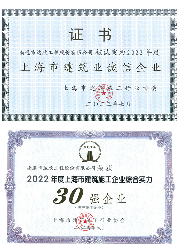 近日,上海市建筑施工行業(yè)協(xié)會公布了《2022年度上海市建筑施工企業(yè)綜合實(shí)力數(shù)據(jù)統(tǒng)計(jì)結(jié)果的通知》。集團(tuán)第一工程公司連續(xù)十六年獲評“2022年度上海市建筑施工企業(yè)綜合實(shí)力30強(qiáng)企業(yè)”和“2022年度上海市建筑業(yè)誠信企業(yè)”稱號。