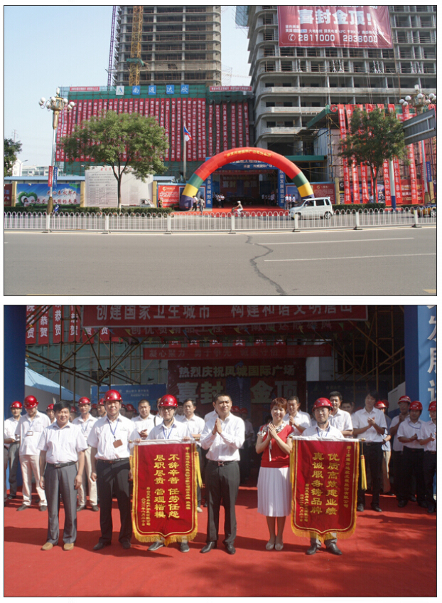 八月二十日,由我司承建的唐山鳳城國(guó)際廣場(chǎng)工程施工現(xiàn)場(chǎng)彩旗飄飄、花團(tuán)錦簇、標(biāo)語滿掛,處處洋溢著熱烈、喜慶的氣氛。上午9時(shí),唐山鳳城國(guó)際廣場(chǎng)工程主體結(jié)構(gòu)封頂儀式在這里隆重舉行。