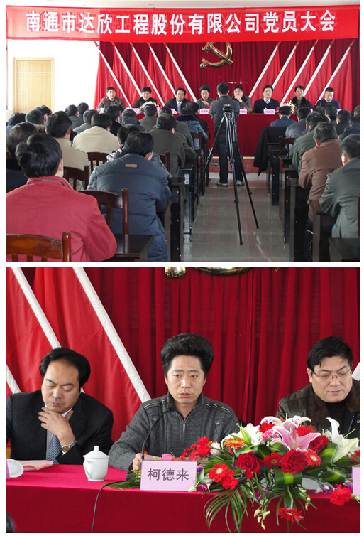 2月20日下午,公司全體黨員聚集在黨員活動室召開南通市達欣工程股份有限公司黨員大會??h委常委、常務(wù)副縣長柯德來、縣人大副主任、組織部副部長章曙東、組織部副部長陳興俊、組織科科長成剛、吉清海、鎮(zhèn)黨委書記盧忠平、鎮(zhèn)長錢亞洲及鎮(zhèn)黨委等領(lǐng)導(dǎo)在百忙之中參加了我公司的黨員大會。這次黨員大會共選舉產(chǎn)生了七位黨委委員:丁興元、馬和軍、劉厚純、陳春紅、徐仁忠、溫鶴華、謝果生,選舉產(chǎn)生了三位紀委委員:王建國、楊靜、徐仁忠。劉厚純?nèi)喂军h委書記、馬和軍任公司黨委副書記、徐仁忠任公司紀委書記。