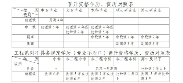 (1)評審。專業(yè)技術(shù)人員取得初級專業(yè)技術(shù)資格后,符合下列表中國家規(guī)定的學(xué)歷、職稱、專業(yè)技術(shù)工作年限的,可申報評審晉升相應(yīng)級別的職稱。少數(shù)專業(yè)破格申報評審的,依照該系列評審條件中破格申報、評審條件。