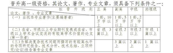 (3)職稱論文、著作的要求:申請人取得低一級資格,申報