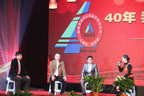 公司董事長馬和軍進(jìn)行了致辭答謝。他說在這樣一個特殊的時刻和一個特殊的地點(diǎn),我們正做著一件具有特別意義的事情。我們一起回顧達(dá)欣的光榮歷史,一起回味達(dá)欣40年來經(jīng)歷的風(fēng)風(fēng)雨雨,一起品嘗我們用勤勞和智慧的雙手?jǐn)€獲的豐收和喜悅。40年來,我們始終堅持改革,并最終受益于改革;40年來,我們傳承并不斷發(fā)揚(yáng)光大著一種精神,這種精神的核心就是“艱苦奮斗,以身作則”、“團(tuán)結(jié)拼搏,顧全大局”、“凝心聚力,勇于爭先”;40年來,在達(dá)欣這個大家庭中始終洋溢著一種濃濃的情誼。站在達(dá)欣40年這個歷史新起點(diǎn)上,相信達(dá)欣的光輝旗幟,一定會更好地迎風(fēng)展揚(yáng)、高高展揚(yáng)、百年展揚(yáng);在熱烈的掌聲中,縣委書記陸衛(wèi)東發(fā)表重要講話,他指出,今天我們共同見證和分享達(dá)欣集團(tuán)四十年發(fā)展的成功和喜悅,作為縣內(nèi)的標(biāo)桿建筑企業(yè),達(dá)欣步入了公司歷史以來發(fā)展最快、榮譽(yù)最高、分配最多、貢獻(xiàn)最大的時期,他希望公司要進(jìn)一步深化改革,加快發(fā)展,高起點(diǎn)定位,突出重點(diǎn),好中求快,實(shí)現(xiàn)達(dá)欣集團(tuán)的新飛躍。