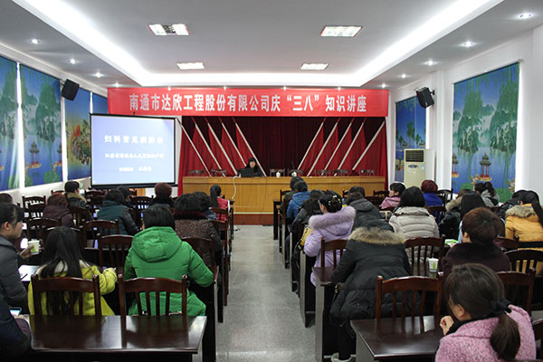 為提升女職工對婦女健康知識的認識,增長健康保健常識,公司工會于3月7日下午邀請了海安縣人民醫(yī)院婦產(chǎn)科專家王秀美主任醫(yī)師,來公司四樓會議室對婦科日常知識進行了專題講座。參加聆聽知識講座有公司總部全體女員工、工程公司管理崗位的女職工以及公司領(lǐng)導家屬代表等。