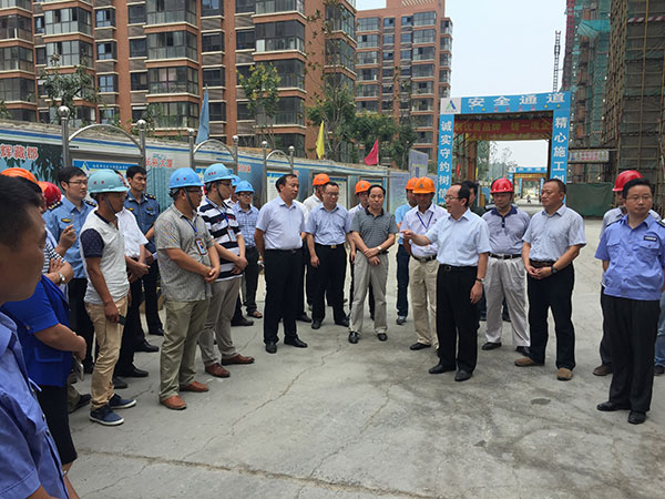 8月27日上午,宿遷市副市長李榮錦率市住建局主要負(fù)責(zé)人及宿遷市10余家建設(shè)單位、監(jiān)理單位、施工單位負(fù)責(zé)人蒞臨第一工程公司承建的星月城二期進(jìn)行參觀考察,這是李榮錦副市長繼8月18日檢查指導(dǎo)后第二次來我項目,重點(diǎn)推介項目揚(yáng)塵噴水設(shè)備系統(tǒng)控制做法及現(xiàn)場安全文明標(biāo)準(zhǔn)化施工特色。