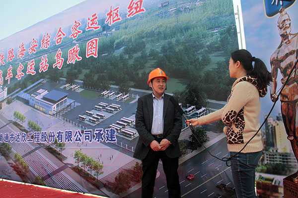 在開工儀式后,馬董事長現(xiàn)場接受了海安電視臺(tái)的采訪,代表公司向全縣人民承諾,要把本項(xiàng)目作為公司的重點(diǎn)工程、形象工程展示給全縣人民,做到抓質(zhì)量精益求精,抓進(jìn)度一絲不茍,抓安全防微杜漸,以一流的素質(zhì),一流的服務(wù),一流的技術(shù),打造出優(yōu)質(zhì)的精品工程回饋家鄉(xiāng)人民。